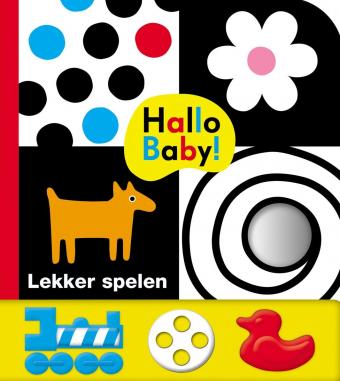 In dit grote kartonboek met een interactieve speelbalk onderaan, spelen de makers in op de wetenschap dat zwart-wit contrasten, felle kleuren en eenvoudige geometrische patronen heel vroeg door baby’s worden waargenomen. De gestileerde voorwerpen over herkenbare thema zoals aankleden, naar het park of eten maken dit boek geschikt vanaf een half jaar.